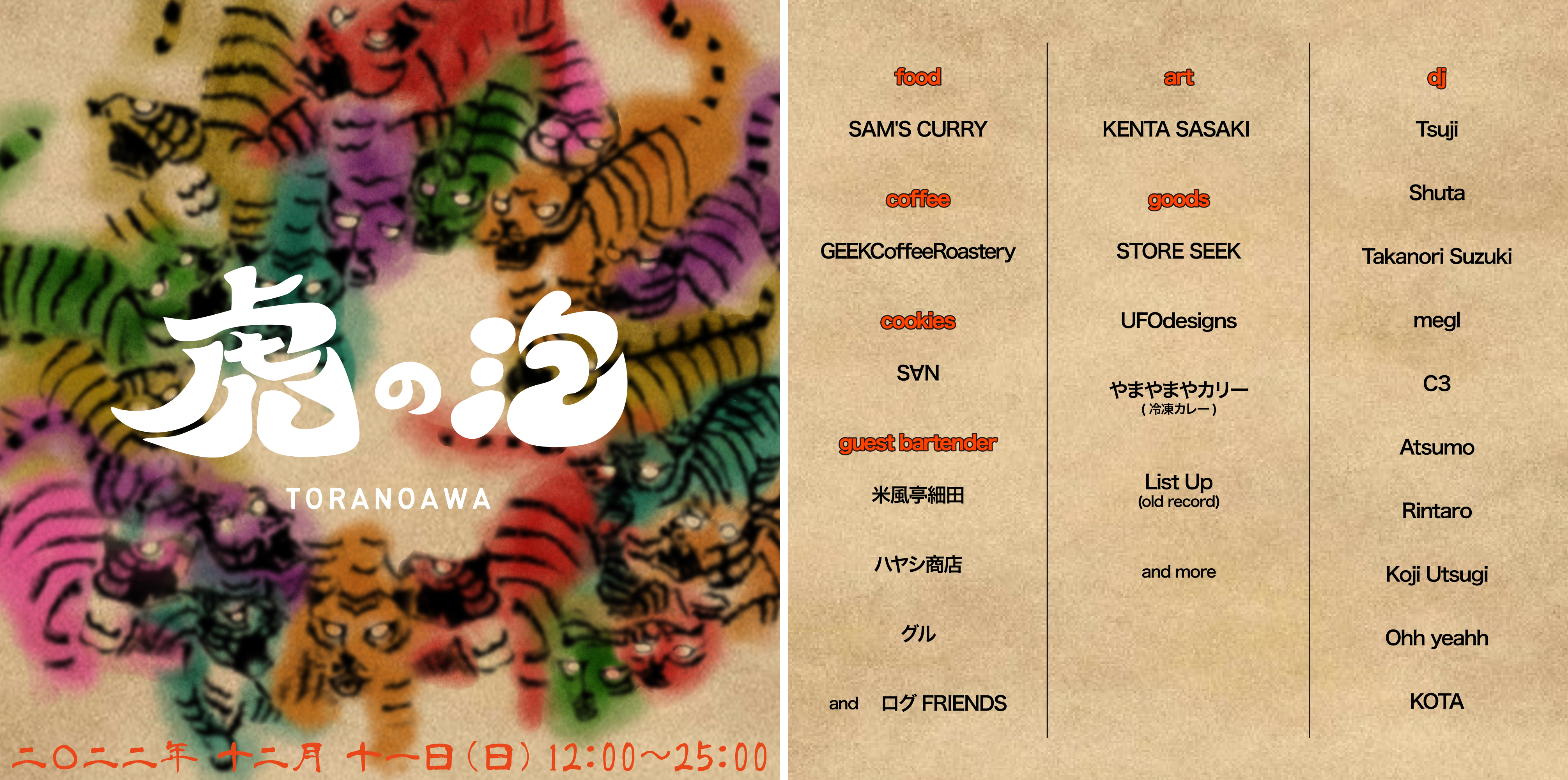 ログで開催されたイベント「虎の泡-TORAnoAWA」のデザイン一式制作いたしました。